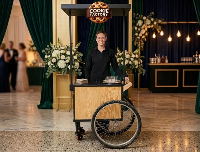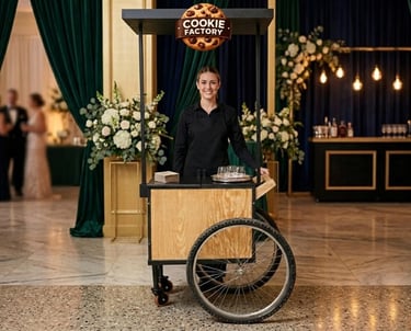 Contrata nuestro carrito para tus eventos y regala a tus invitados sus 5 minutos Cookie Factory.